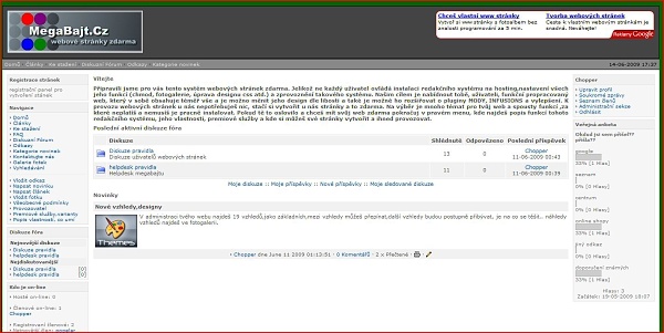 Připravili jsme pro vás tyto stránky,kde si můžete vytvořit svůj vlastní web úplně zadarmo. Pokud jsi uživatel,který neumí instalovat webové stránky, neumí nastavovat přístupy, chmod, upravovat design a chce jen pomocí ikonek ovládat svůj web jsi tu správně. Právě takovýto systém je tento web,kde si můžeš vytvořit své stránky a to zdarma. Nepotřebuješ vědět nic o aktualizacích, vylepšování webu, hostingu,vše řešíme za tebe. Ty si můžeš vybrat s mnoha designů webu, úprav webu,vše je v jedné instalaci.O aktualizace se staráme my,včetně hostingu, nových MÓDŮ, vylepšení atd. Ty si můžeš vytvořit svůj vlastní web s tvým názvem a provozovat ho úplně zdarma. A pokud si nevíš s něčím rady,prostě napíšeš do podpory a dostaneš odpověď na svůj problém s webovými stránkami. Líbí se ti takový přístup?? Tak neváhej a registruj si svůj vlastní web.Pro registraci si můžeš vybrat domény megabajt.cz, kilobajt.cz, coolstranky.cz (připravuje se megabajt.sk)