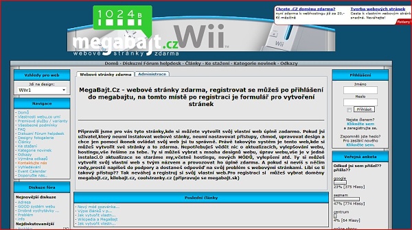 MegaBajt.Cz - webové stránky zdarma, registrovat se můžeš po přihlášení do megabajtu, na tomto místě po registraci je formulář pro vytvoření stránek