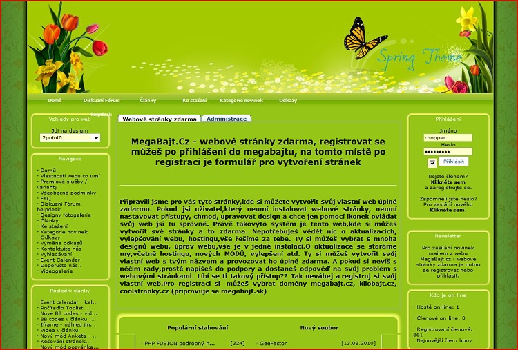 MegaBajt.Cz - webové stránky zdarma, registrovat se můžeš po přihlášení do megabajtu, na tomto místě po registraci je formulář pro vytvoření stránek