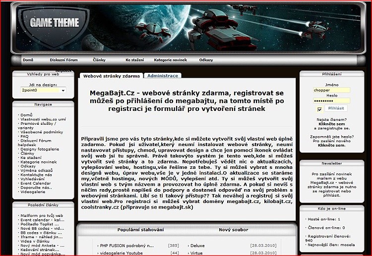 MegaBajt.Cz - webové stránky zdarma, registrovat se můžeš po přihlášení do megabajtu, na tomto místě po registraci je formulář pro vytvoření stránek