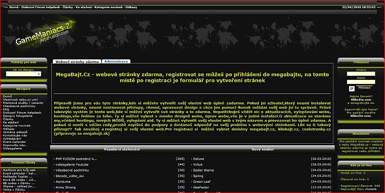MegaBajt.Cz - webové stránky zdarma, registrovat se můžeš po přihlášení do megabajtu, na tomto místě po registraci je formulář pro vytvoření stránek