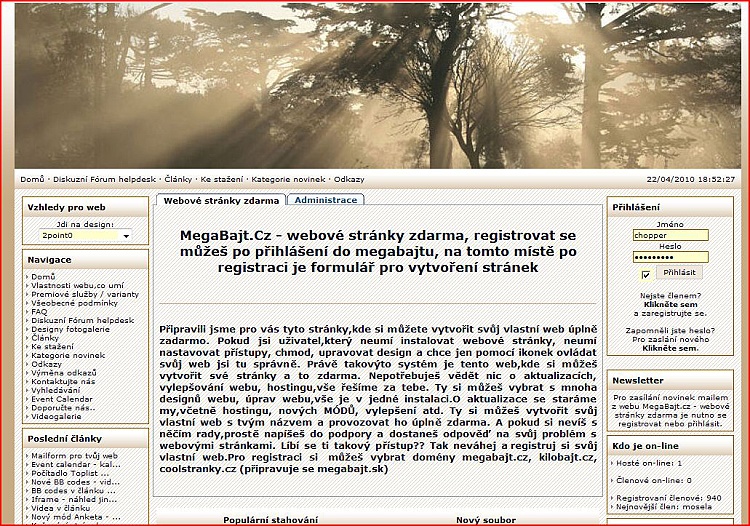 MegaBajt.Cz - webové stránky zdarma, registrovat se můžeš po přihlášení do megabajtu, na tomto místě po registraci je formulář pro vytvoření stránek