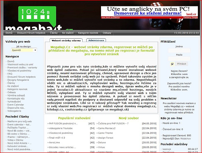 MegaBajt.Cz - webové stránky zdarma, registrovat se můžeš po přihlášení do megabajtu, na tomto místě po registraci je formulář pro vytvoření stránek